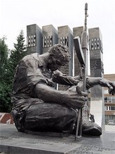 Позже к мемориалу были добавлены стойки из гранита, на которых находятся имена солдат, погибших в Чеченской войне.